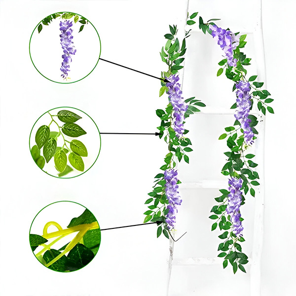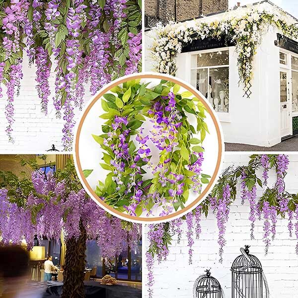 Non c’è bisogno di avere a che fare con rampicanti o fiori che sbiadiscono e appassiscono. La nostra simulazione di glicine è realizzata in seta di alta qualità e plastica flessibile, per garantire che mantengano la loro vitalità per sempre. Questi fiori resistenti sono stati progettati per durare nel tempo, offrendo una soluzione decorativa bella e duratura.
