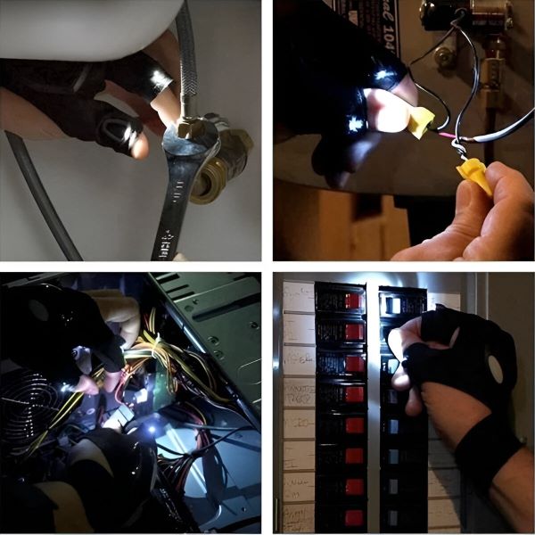 I guanti LEDIGLO offrono un’illuminazione a mani libere, perfetta per attività come la riparazione di auto, l’idraulica e la meccanica.
