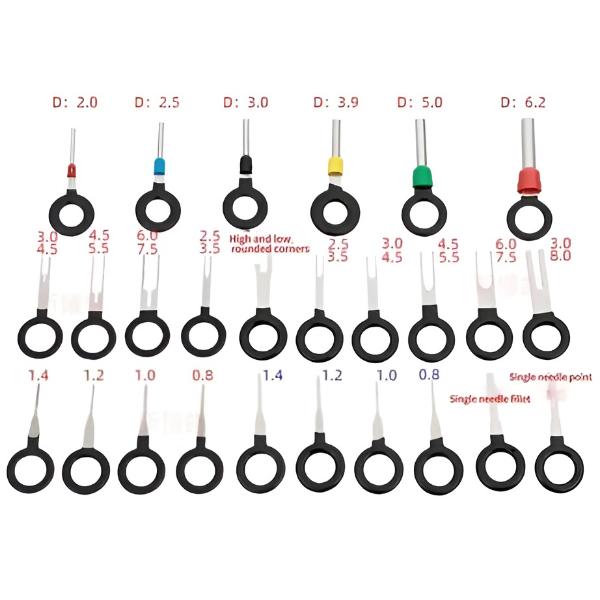 Include estrattori di pin singoli e doppi e strumenti di fusione di diverse dimensioni per garantire la compatibilità con un’ampia gamma di connettori, sia nelle auto che nei dispositivi elettronici.