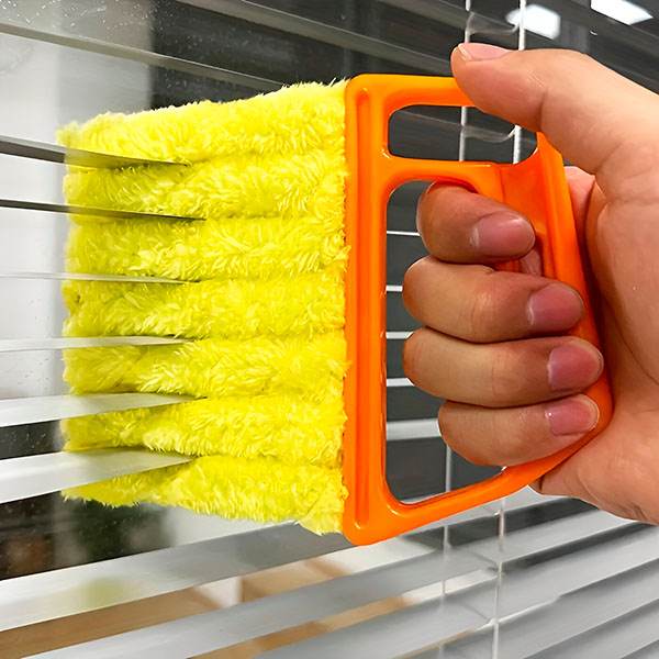 Risparmia tempo e fatica! Questo strumento pulisce la parte superiore e inferiore di 6 listelli in un colpo solo. Niente più pulizia di ogni tenda una per una.