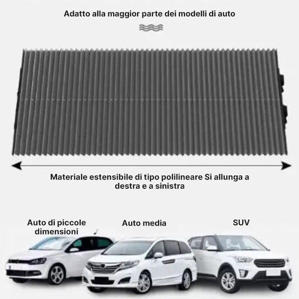 Questa tendina parasole è progettata per adattarsi a una vasta gamma di veicoli, inclusi auto, furgoni, camion e SUV. È un adattamento universale perché puoi semplicemente tagliare la larghezza alla misura desiderata.