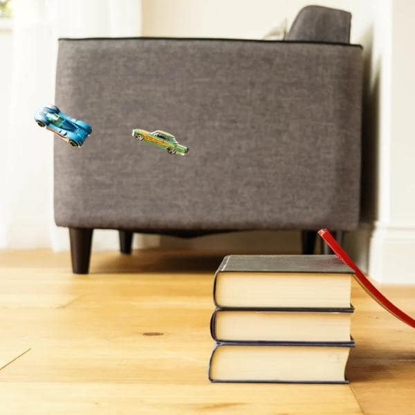 Utilizzate le macchinine esistenti, attaccatele facilmente a una finestra o a una porta, srotolatele e iniziate a correre – alimentate dalla sola forza di gravità, senza bisogno di batterie o di costosi componenti aggiuntivi.