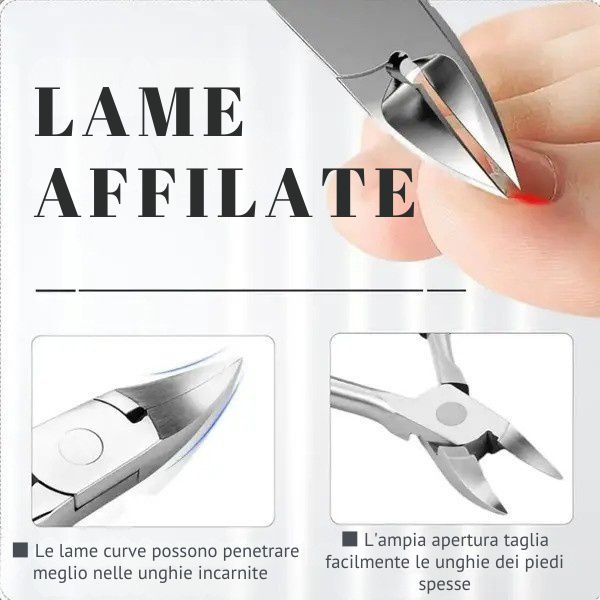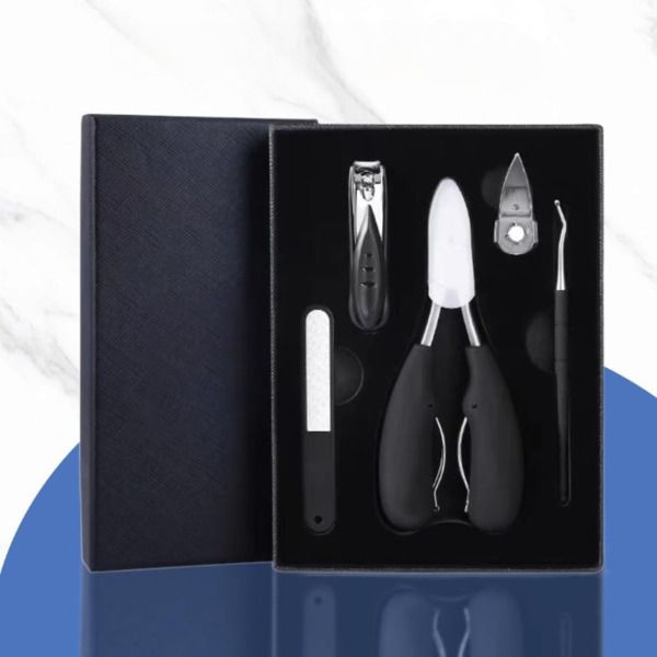 Progettati appositamente per unghie ispessite e incarnite, gli strumenti di questo set offrono la forza e la precisione necessarie per la cura delle unghie difficili senza disagio o rischio di lesioni.